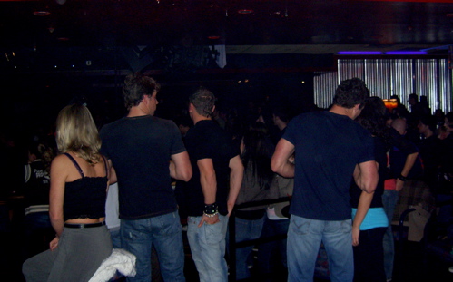 キーボード&VocalのSteve BaysはThe KillersのBrandon Flowersみたいでした。お姉ちゃん達もきゃーきゃー言ってました。歌は上手でした。この晩Hot Hot Heatが始まるまでエンターテインしてくれたのが、このムキムキ男子3人↓。全く同じ服を来て、スキンシップも過激に色んな女性をナンパしてました。こんな風にナンパする事、英語でSharkingって言うそうです。ほんとに彼ら、ジョーズのサメみたいでした。