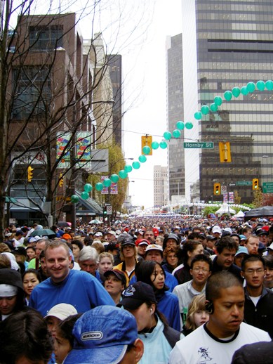 第21回Vancouver Sun Run 10KMマラソンに出た。Sun Runは北米で2番目に大きな10KMマラソンで、今日も4万7千人が集まった。去年、私の会社でチームを結成し、今年は2度目の出場となった。嬉しいことに、今年はオフィススタッフの約半数が、チームに参加した。