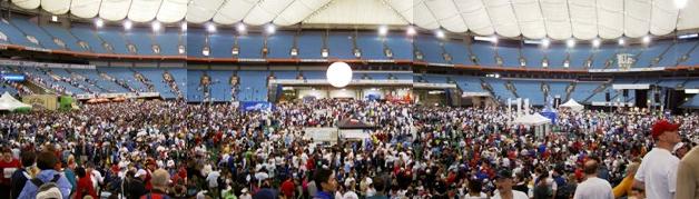 マラソンした後、このBC Placeで食べ物が配られます。すごい人でしょ?